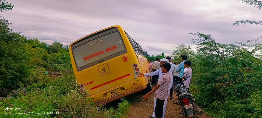 शाळेची बस पाटाच्या कडेला कलंडताच टळला अनर्थ; ७० विद्यार्थी सुखरूप
