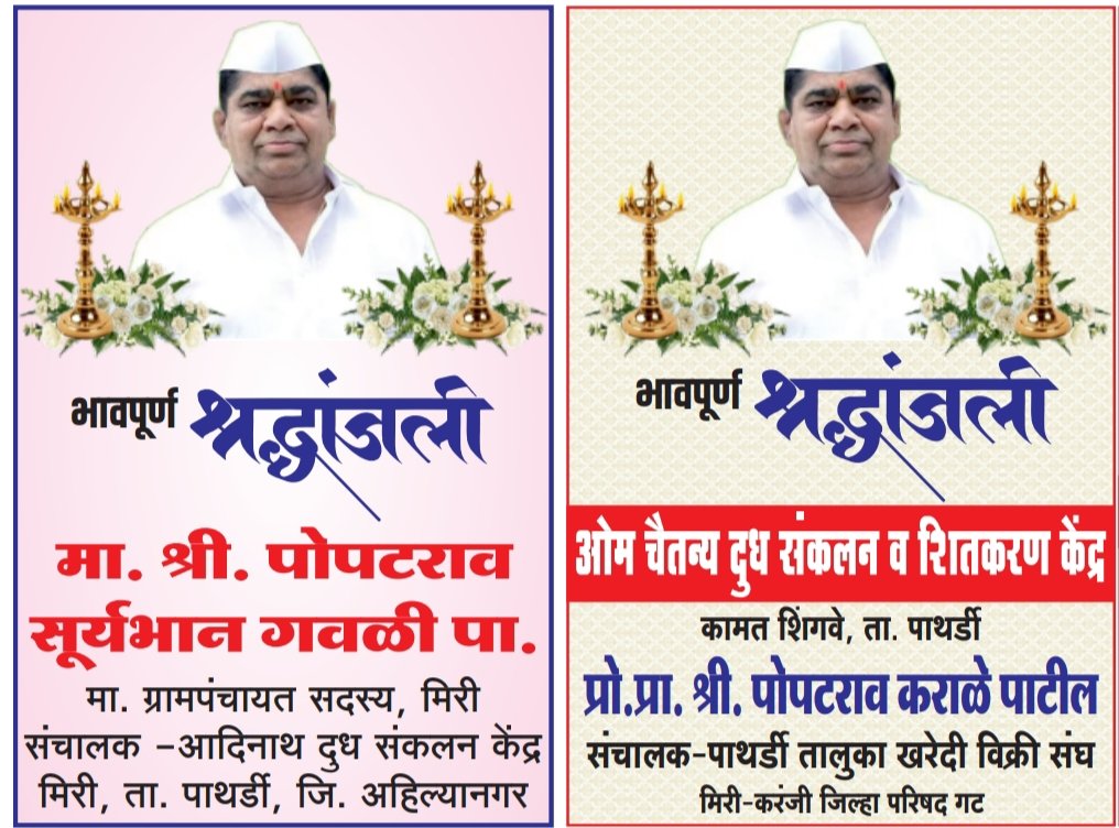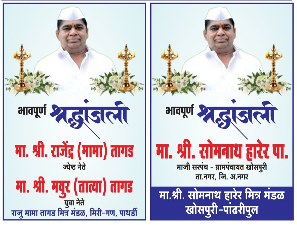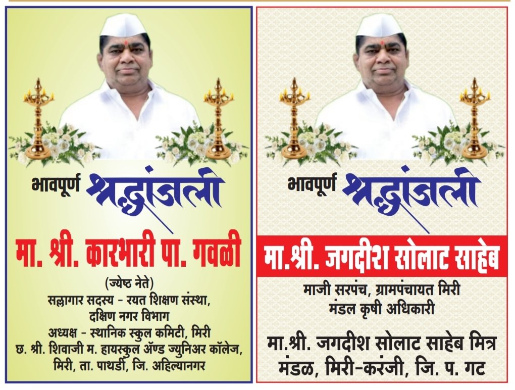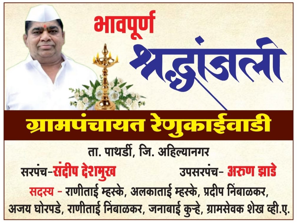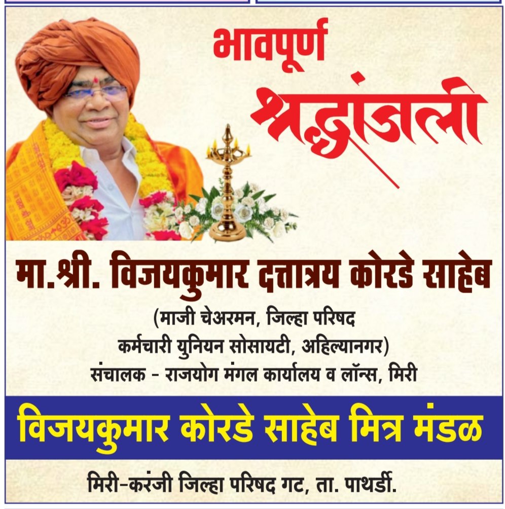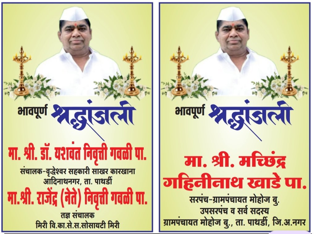 अशा या लोकनेत्याला राहुरी नगर पाथर्डी विधानसभा मतदारसंघातील सर्व नागरिक, कार्यकर्ते आणि समर्थकांच्या वतीने विनम्र अभिवादन आणि भावपूर्ण श्रद्धांजली.