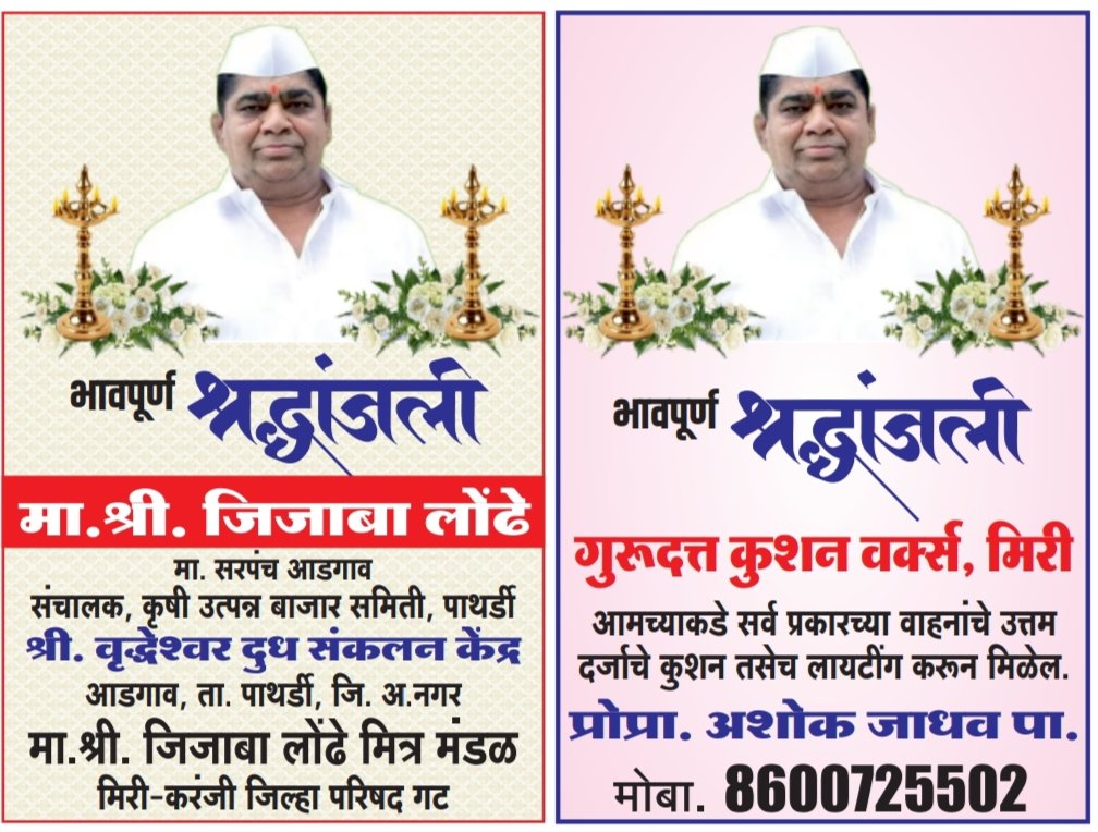 अशा या लोकनेत्याला राहुरी नगर पाथर्डी विधानसभा मतदारसंघातील सर्व नागरिक, कार्यकर्ते आणि समर्थकांच्या वतीने विनम्र अभिवादन आणि भावपूर्ण श्रद्धांजली.